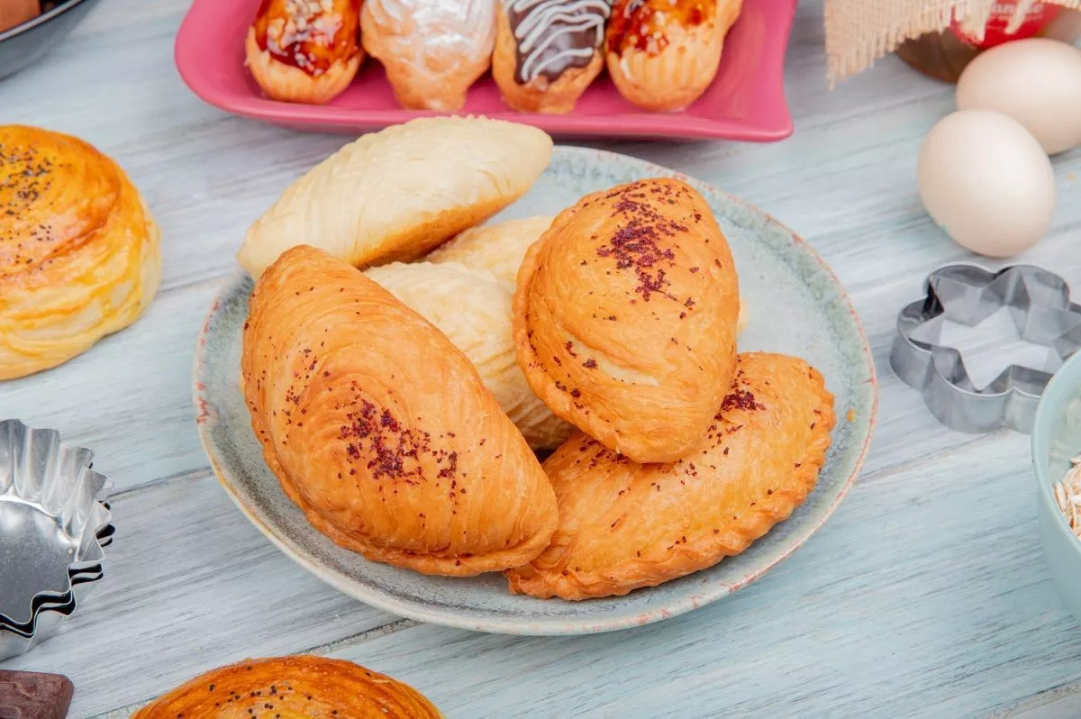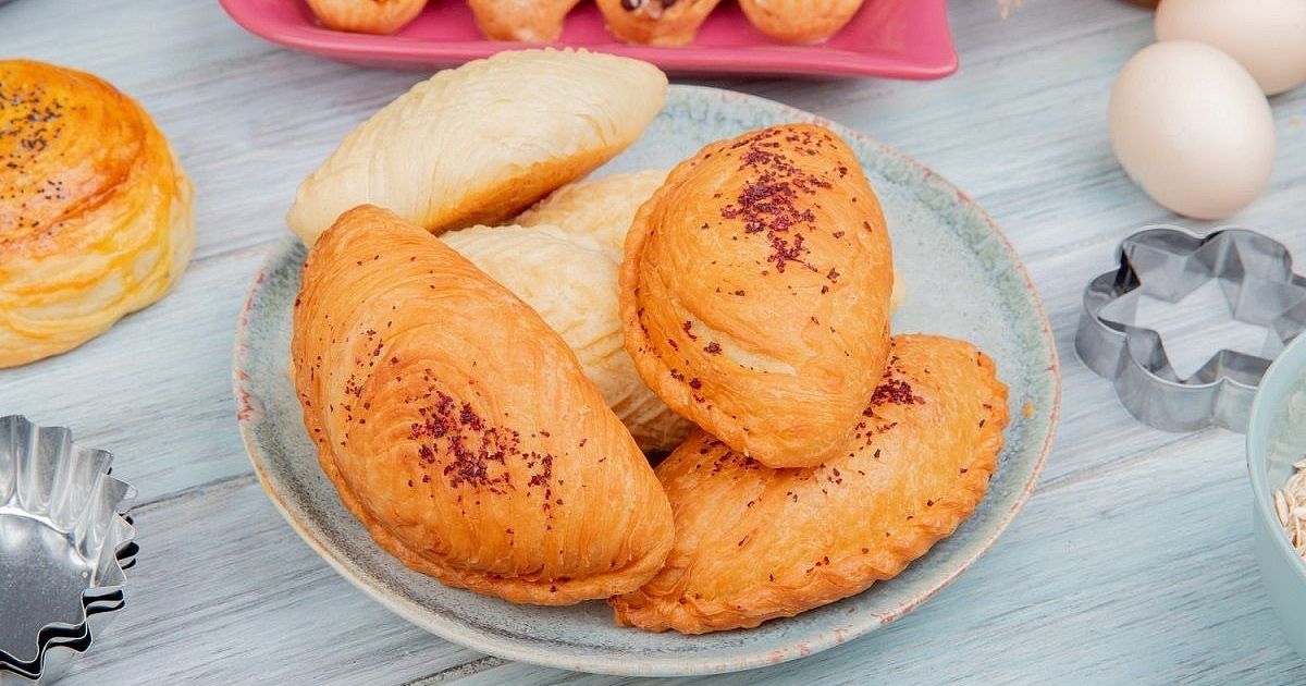 Разогрейте духовку до 180 градусов. Противень застелите пергаментной бумагой и выложите на него пирожки. Смажьте их взбитым яйцом или просто сладкой водой для красивого золотистого цвета. Выпекайте пирожки в течение 20-25 минут, пока они не станут румяными и аппетитными. Приятного аппетита!