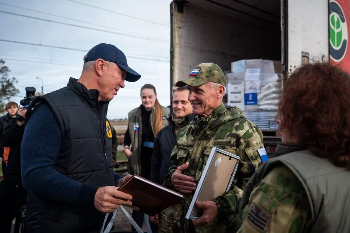 Кубанскую волонтерскую группу встретил руководитель регионального отделения партии «Единая Россия» в Херсонской области, губернатор Владимир Сальдо.