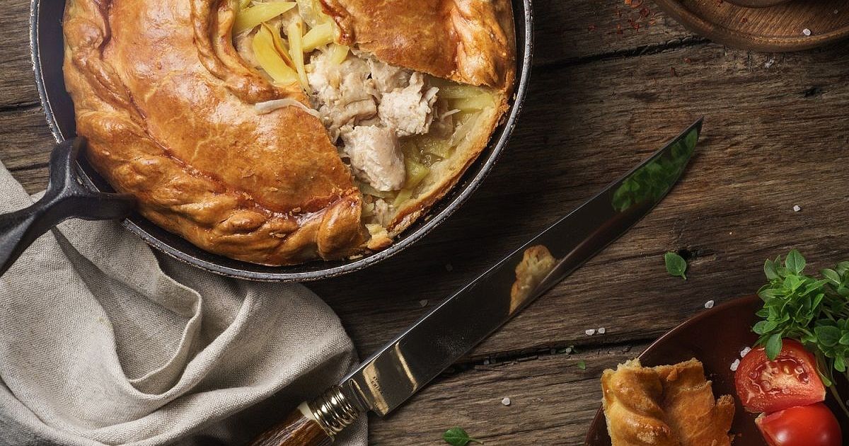 Запекайте пирог дольше обычного на низкой температуре для равномерного пропекания и хрустящей корочки.