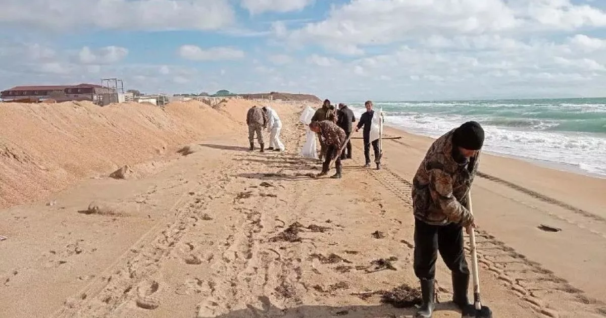 Сейчас специалисты МЧС России и Кубань-СПАС, сотрудники администрации муниципалитета и волонтеры убирают мазут. В работах задействовано более 50 человек, сообщает оперативный штаб Краснодарского края.