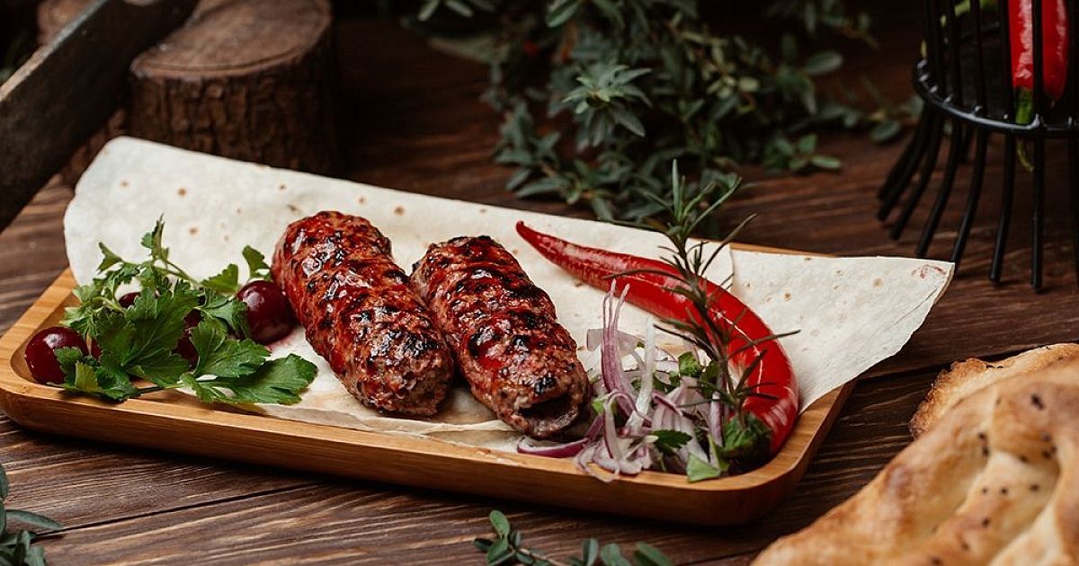Справка "Кубанских новостей": Кебабчет — это разновидность люля-кебаба, приготовленного из мясного фарша с добавлением специй и зелени, обычно нанизываемого на шампуры и запекаемого на открытом огне или в духовке.