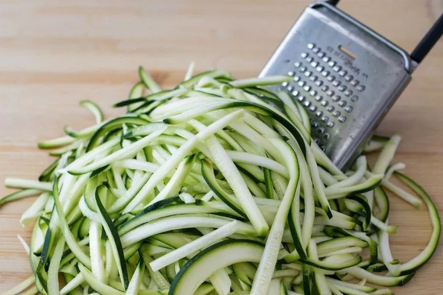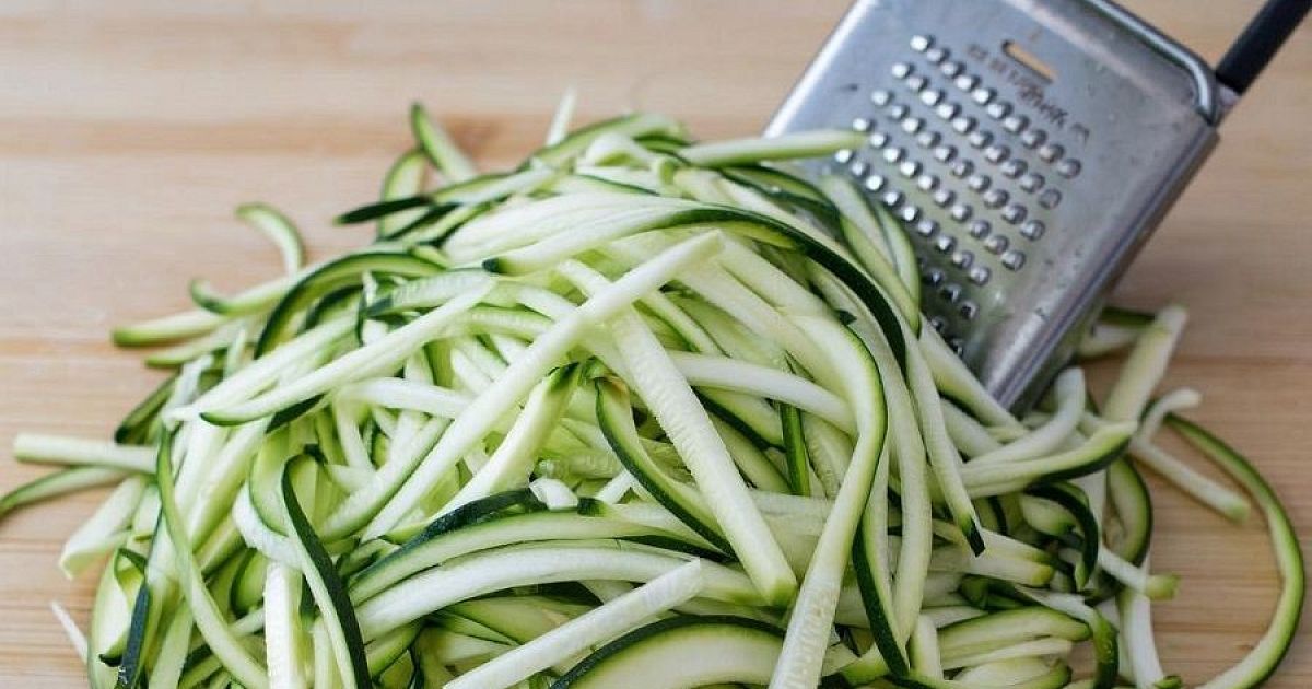 Кабачки и морковь натрите на терке для получения соломки. Лук тонко нарежьте полукольцами.