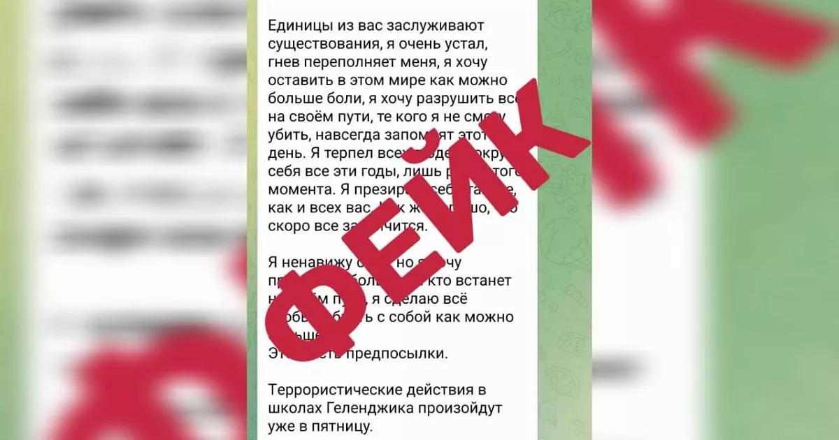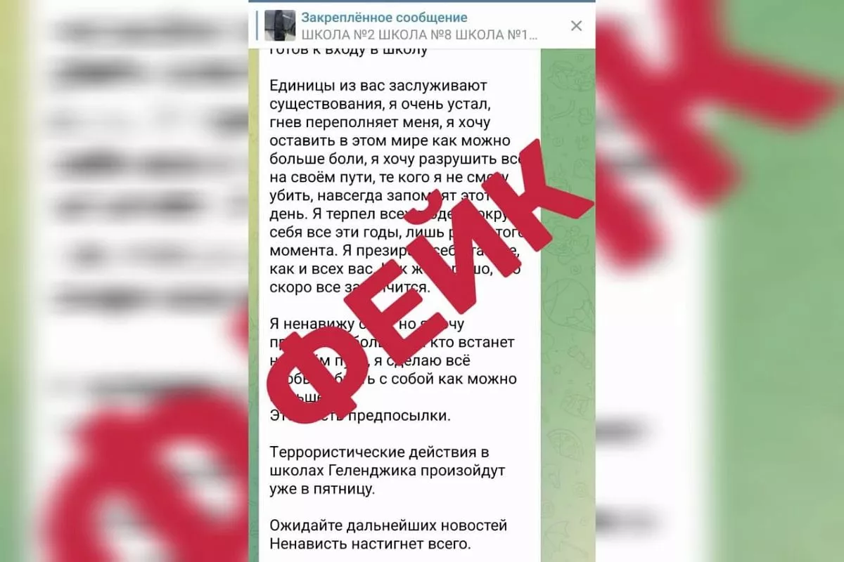 - Администрация города Геленджика информирует, что в мессенджерах распространяется ложное сообщение о готовящихся противоправных действиях в учебных заведениях, - сообщает Муниципальный центр управления города в своем Telegram-канале.