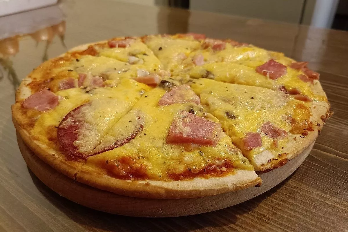 Выпекайте в разогретой до 180°C духовке около 15-20 минут, пока сыр не расплавится и не подрумянится, а тесто не станет золотистым. Дайте пицце немного остыть и нарежьте на порционные куски.