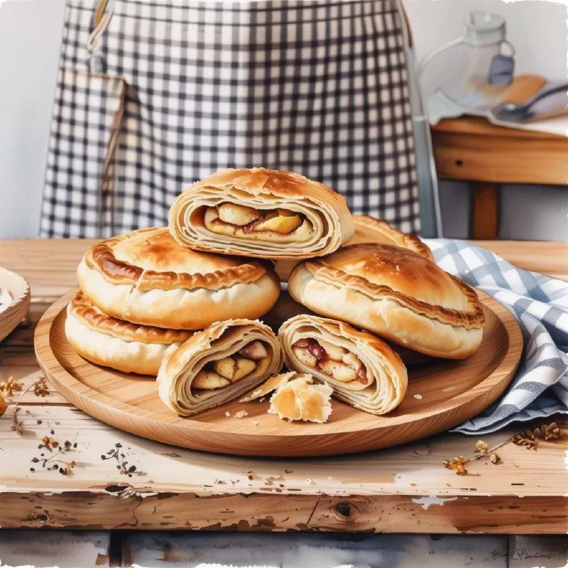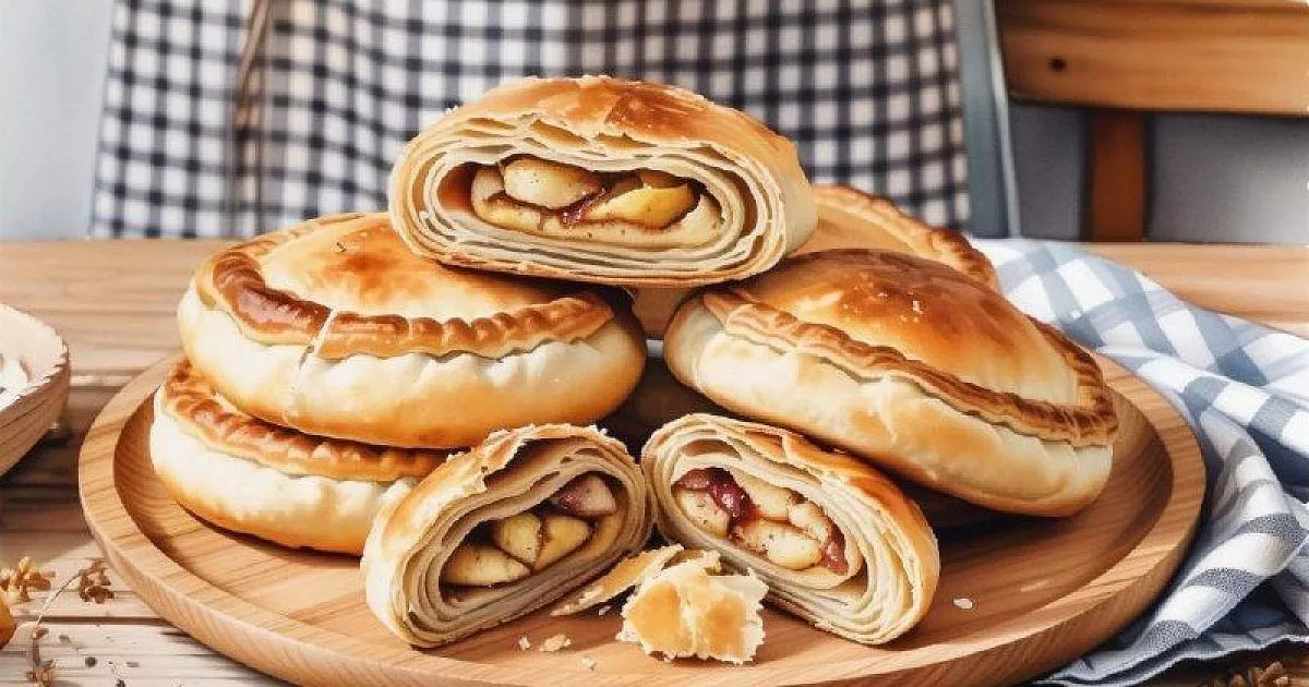Процесс лепки пирожков также проходит быстро, и благодаря этому способу работы с тестом пирожки получаются слоеными. Можно экспериментировать с разными начинками. Отлично подойдут слоеные пирожки с тушеной капустой, грибами, яблоками, а в не постные дни — с курицей и обжаренным луком.