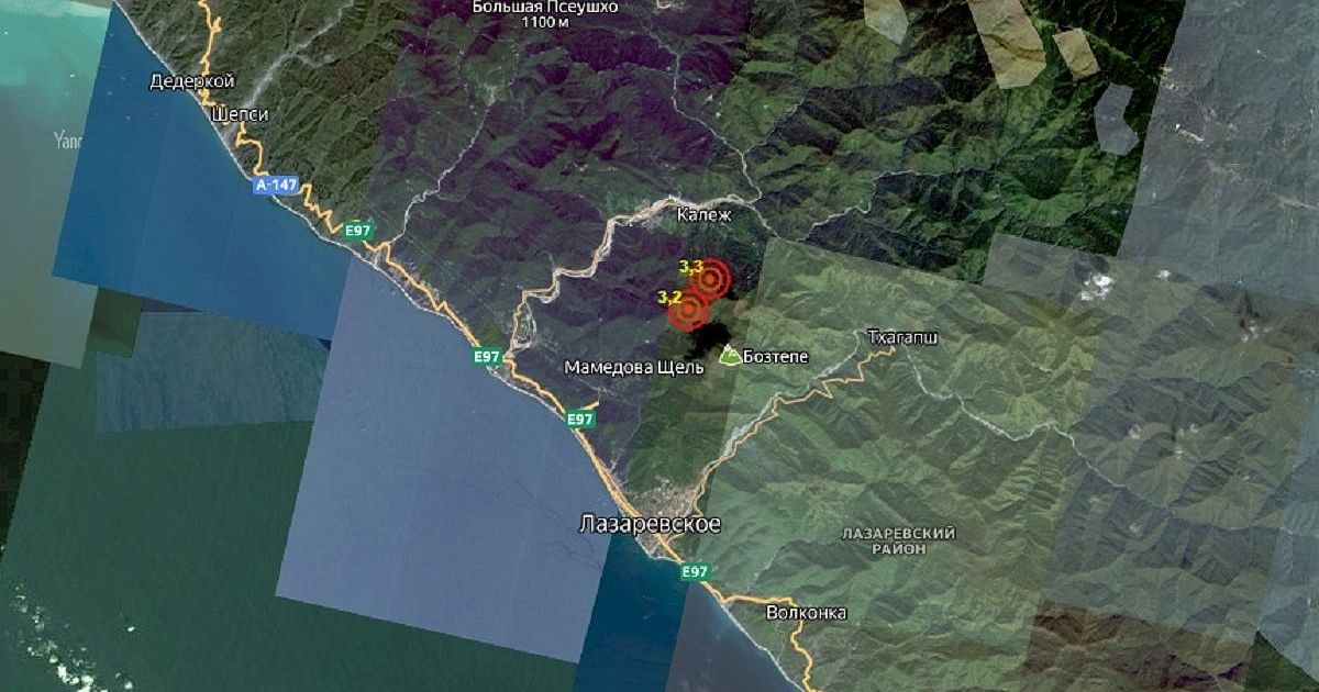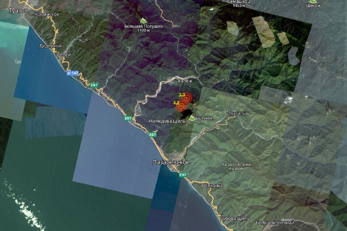 Эпицентр первого сейсмособытия находился в восьми километрах от поселка Лазаревского в Сочи, второго - в семи километрах от Лазаревского.