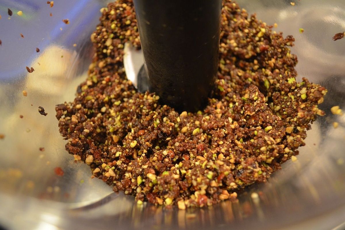 Затем пропустите курагу, чернослив, изюм, грецкие орехи и лимон через мясорубку. Если нет мясорубки, можно использовать блендер, но следите, чтобы смесь не превратилась в однородную кашу.