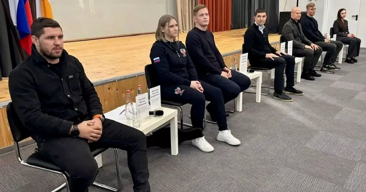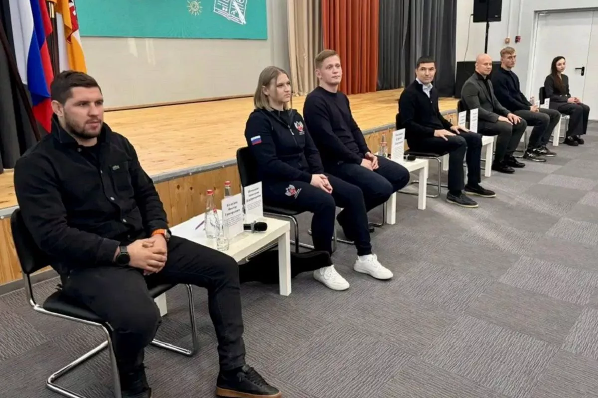 Со школьниками встретились министр спорта Кубани, мастер спорта России по рукопашному бою Серафим Тимченко, депутат ЗСК, директор ГБУ ДО КК СШОР «ЦСЕ «РУБЕЖ», мастер спорта России по универсальному бою, бывший боец UFC Сергей Хандожко, профессиональный боец RIZIN, мастер спорта России международного класса Виктор Колесник, и.о. директора СШОР «Самбо», мастер спорта России по самбо и дзюдо Денис Баканов, чемпионка мира, пятикратная чемпионка России по боксу, мастер спорта международного класса Анастасия Шамонова, начальник отдела самбо, мастер спорта России Мария Иващук.