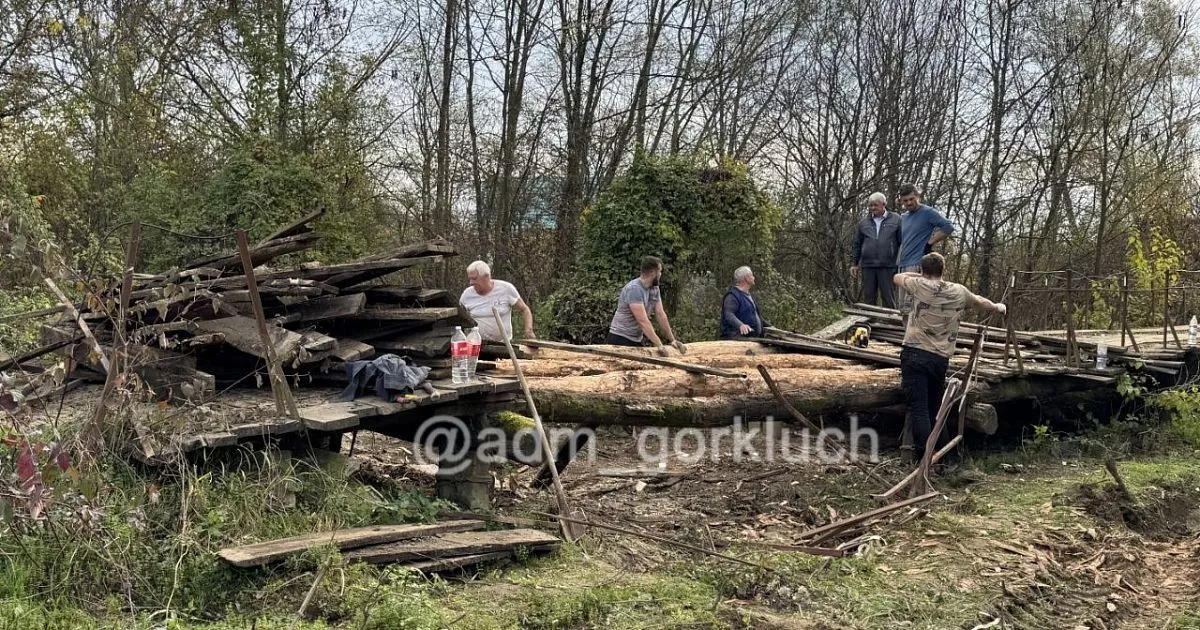 На месте работают сотрудники ЦРЭС, а местный предприниматель предоставил необходимые строительные материалы – дубовые балки, которые уже установлены под настил.