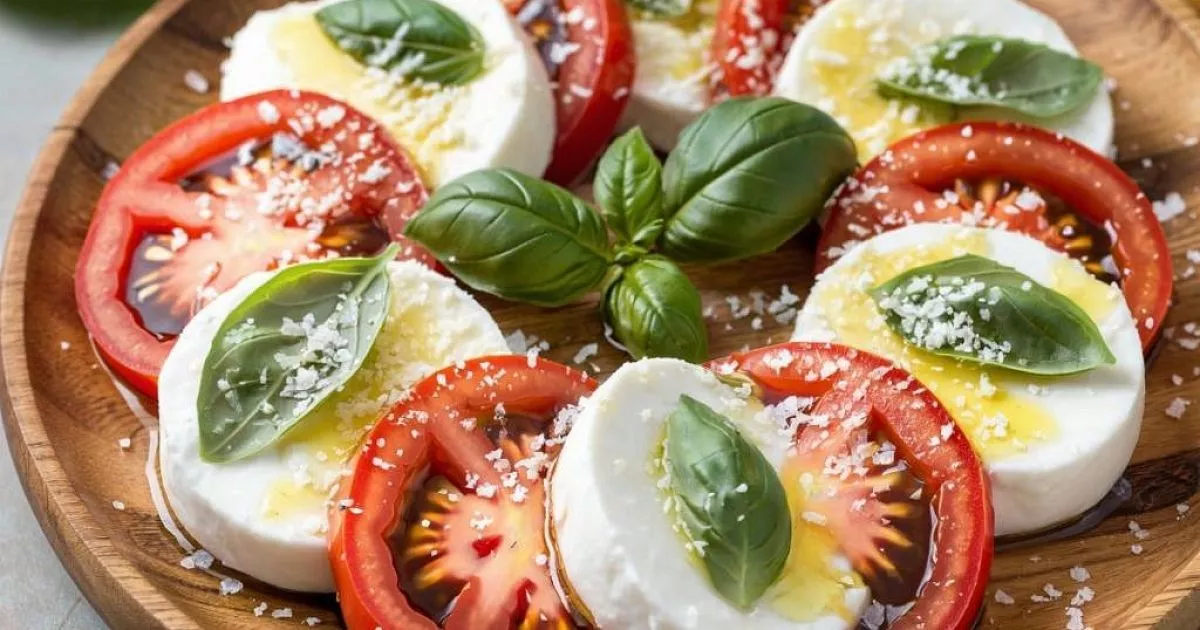 Эта итальянская закуска давно стала классикой для любого случая. Для ее приготовления нужны всего несколько ингредиентов: свежие помидоры, моцарелла, базилик, небольшое количество оливкового масла и соус песто.