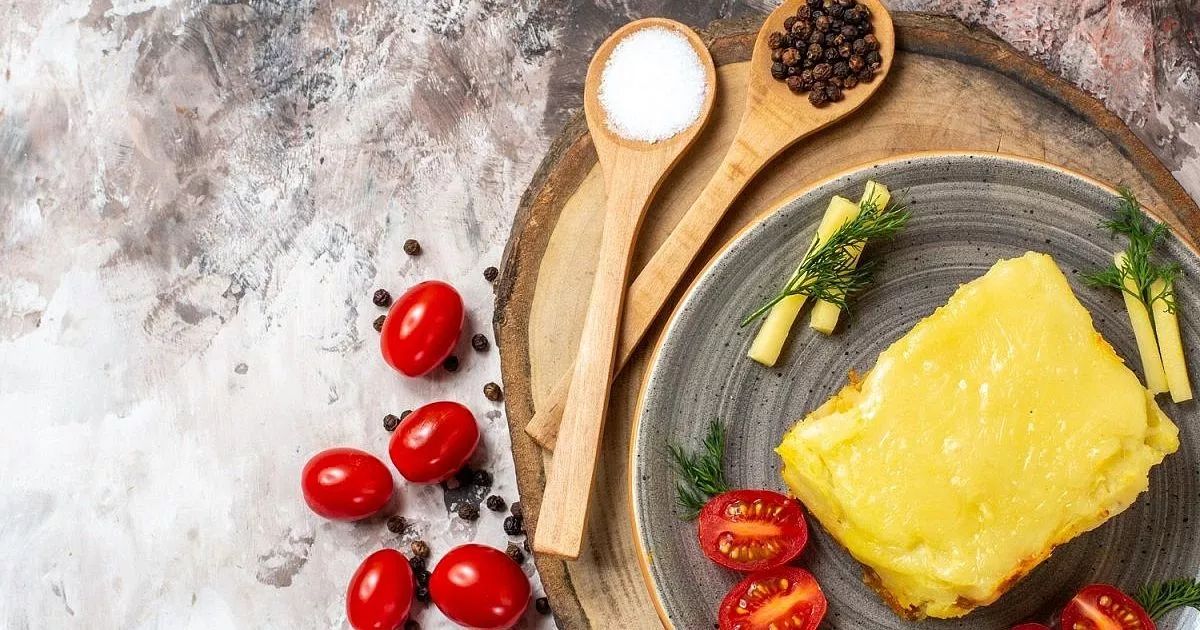 Ингредиенты: яйца куриные — 4 шт, молоко пастеризованное — 100 мл, пшеничная мука высшего сорта — 1 ст. ложка, кукурузный крахмал — 1 ч. ложка, разрыхлитель теста — 0,5 ч. ложки, сливочное масло — 20 гр, соль — небольшая щепотка.