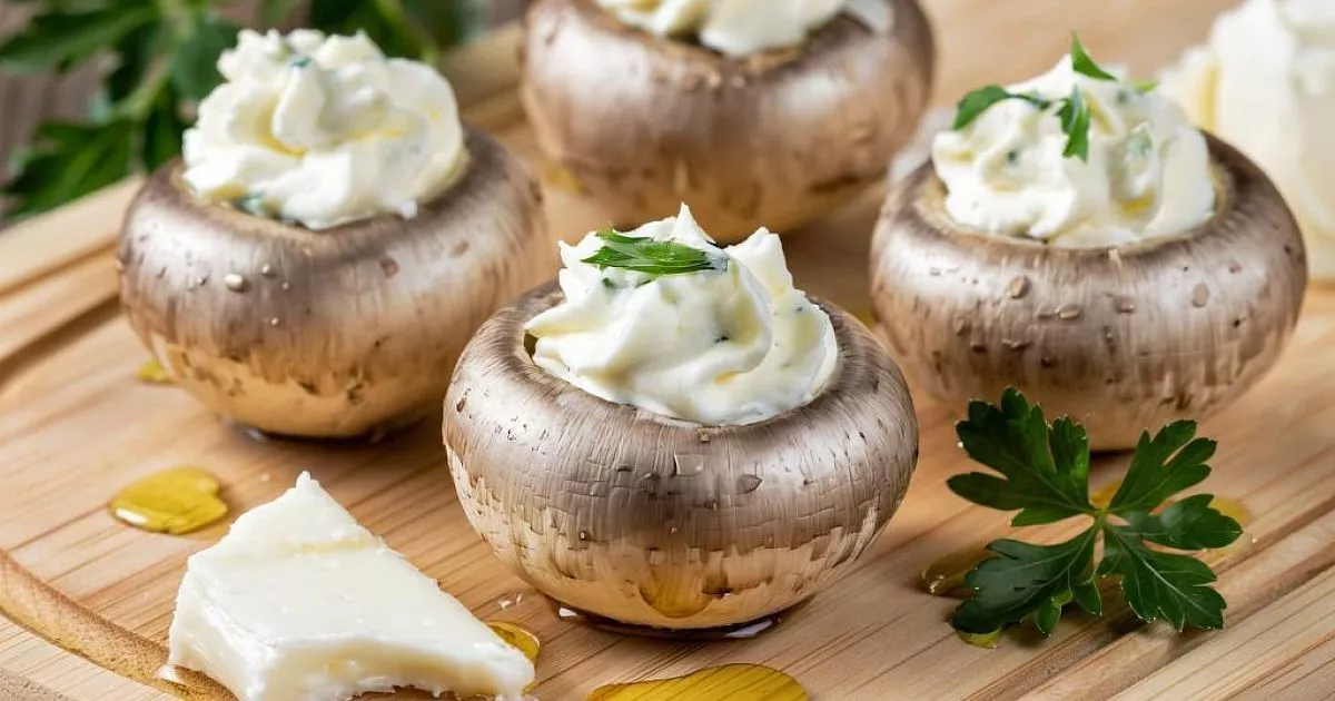Главная задача — сохранить баланс между сочностью грибов и структурой начинки. Для этого выбирают крупные шампиньоны с плотными шляпками. Внутренняя мякоть грибов аккуратно удаляется и используется в начинке, что позволяет сохранить цельность вкуса. Куриное филе делает начинку нежной, а сливки придают ей кремовую текстуру без ощущения тяжести.