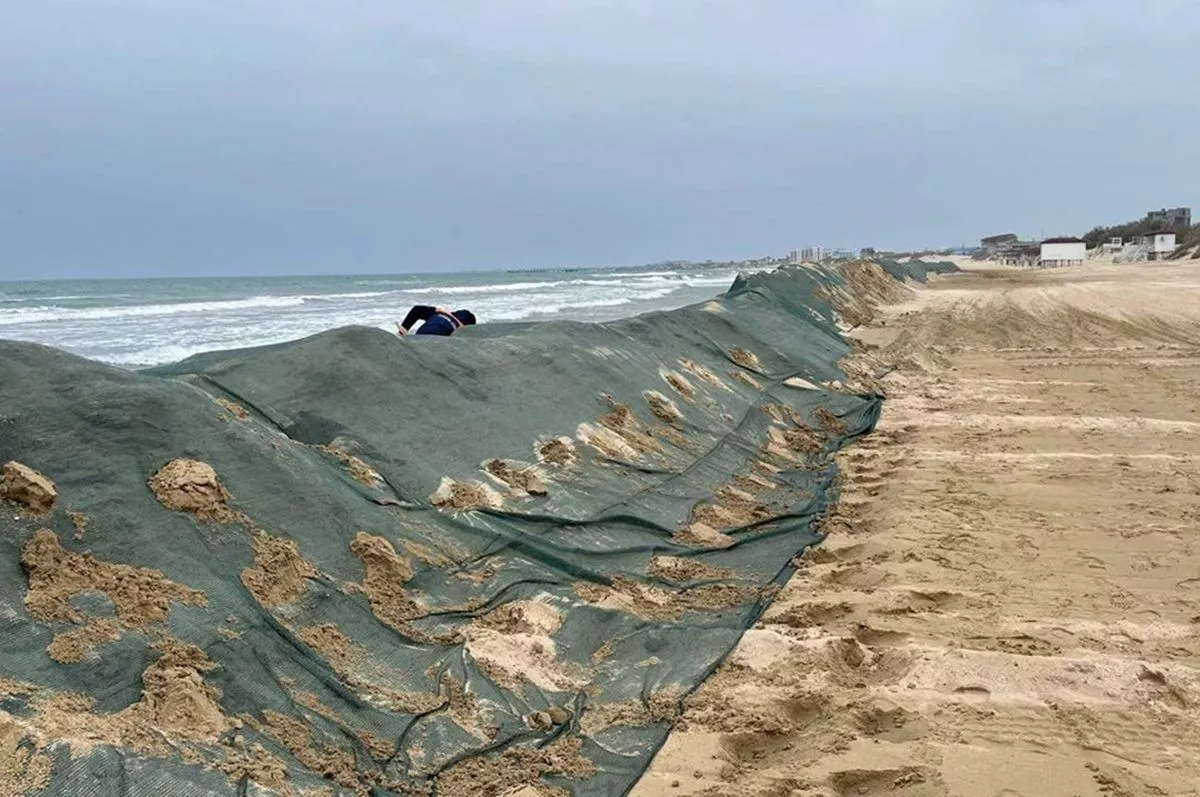 За неделю было восставлено более 10 километров сетей вдоль береговой линии.