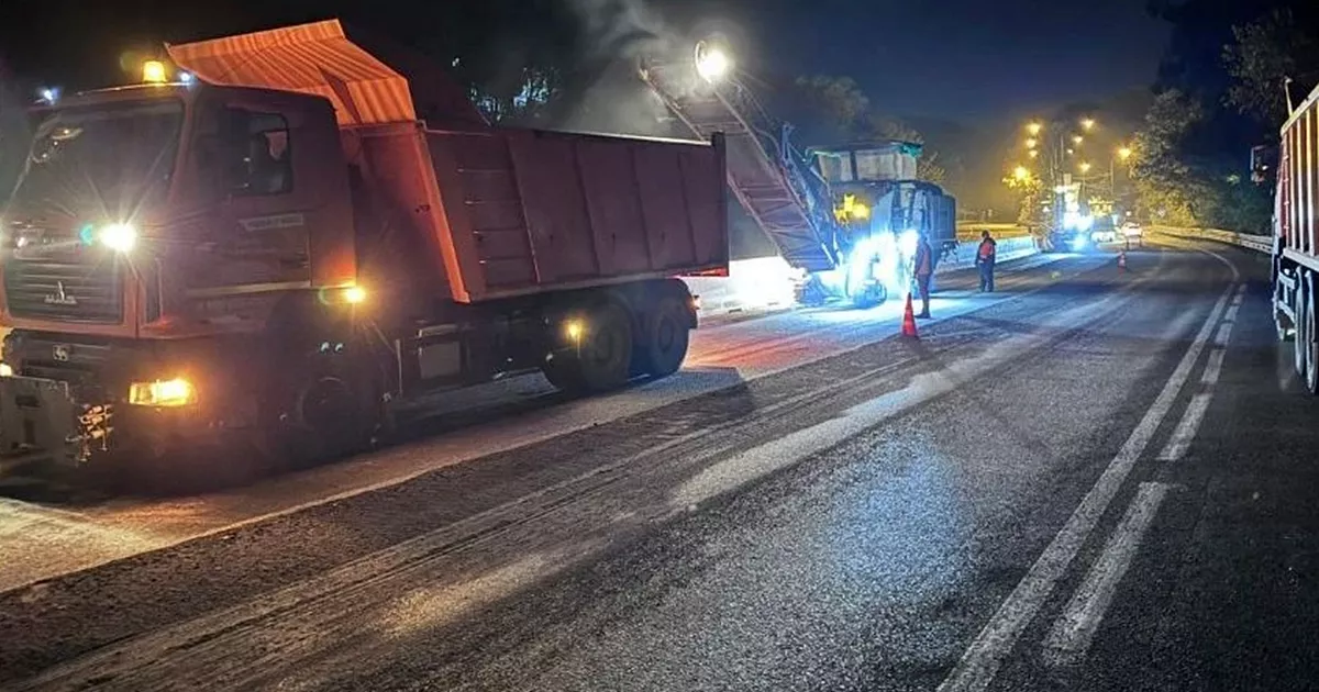 Специалисты проводят ремонт шестикилометрового участка в ночное время.