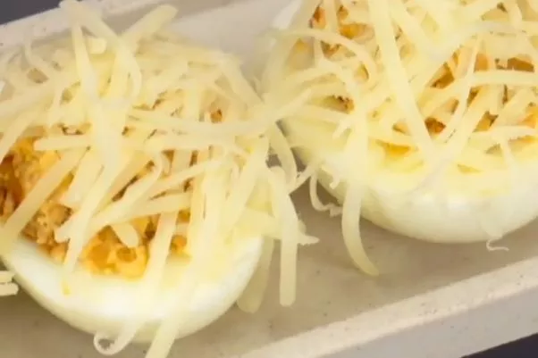 Для пикантности можно добавить щепотку мускатного ореха. Если нет пармезана, подойдет любой выдержанный твердый сыр. Для диетического варианта майонез можно заменить греческим йогуртом. Готовые яйца храните в холодильнике.