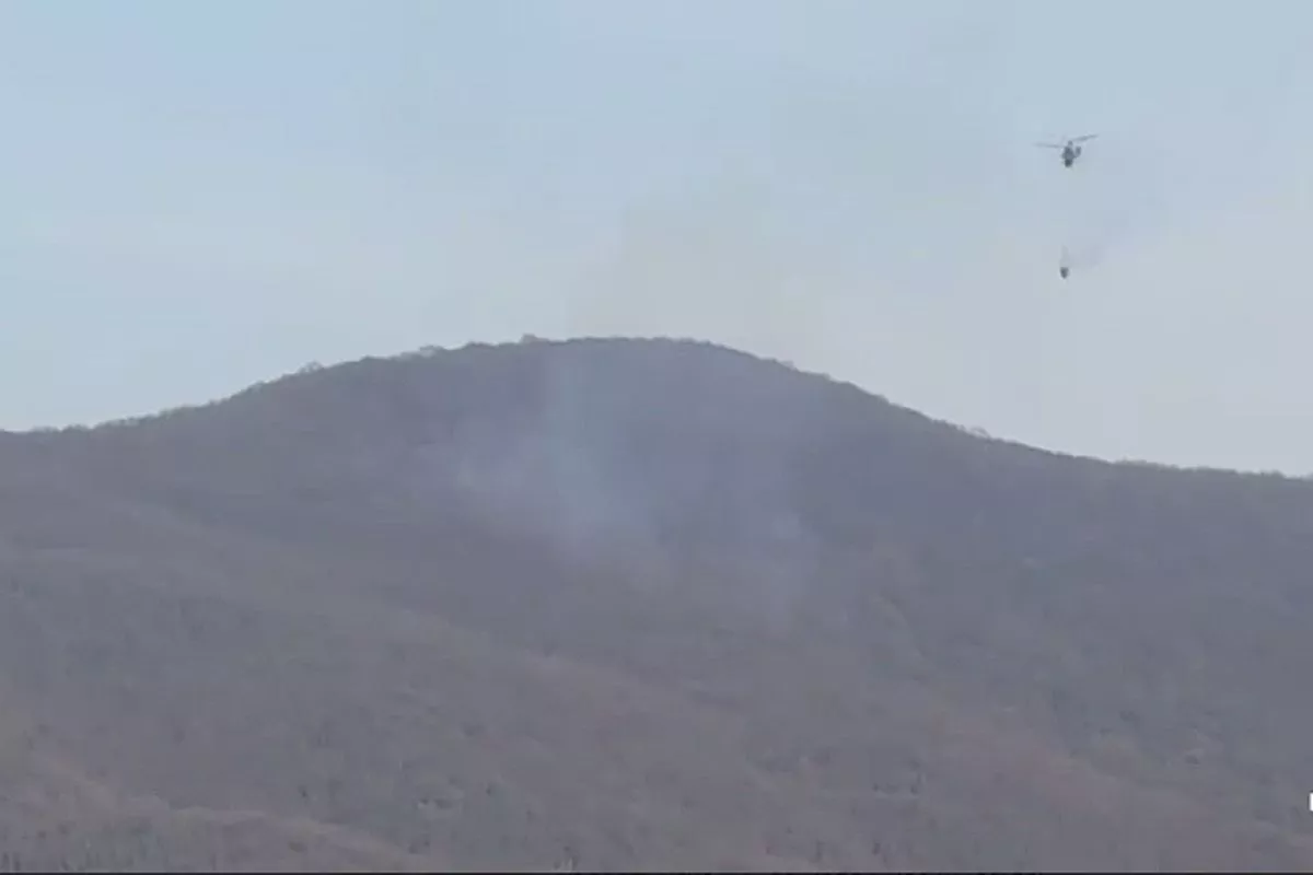 Для усиления работ по тушению применен вертолет Ка-32 Южного авиационно-спасательного центра МЧС России.