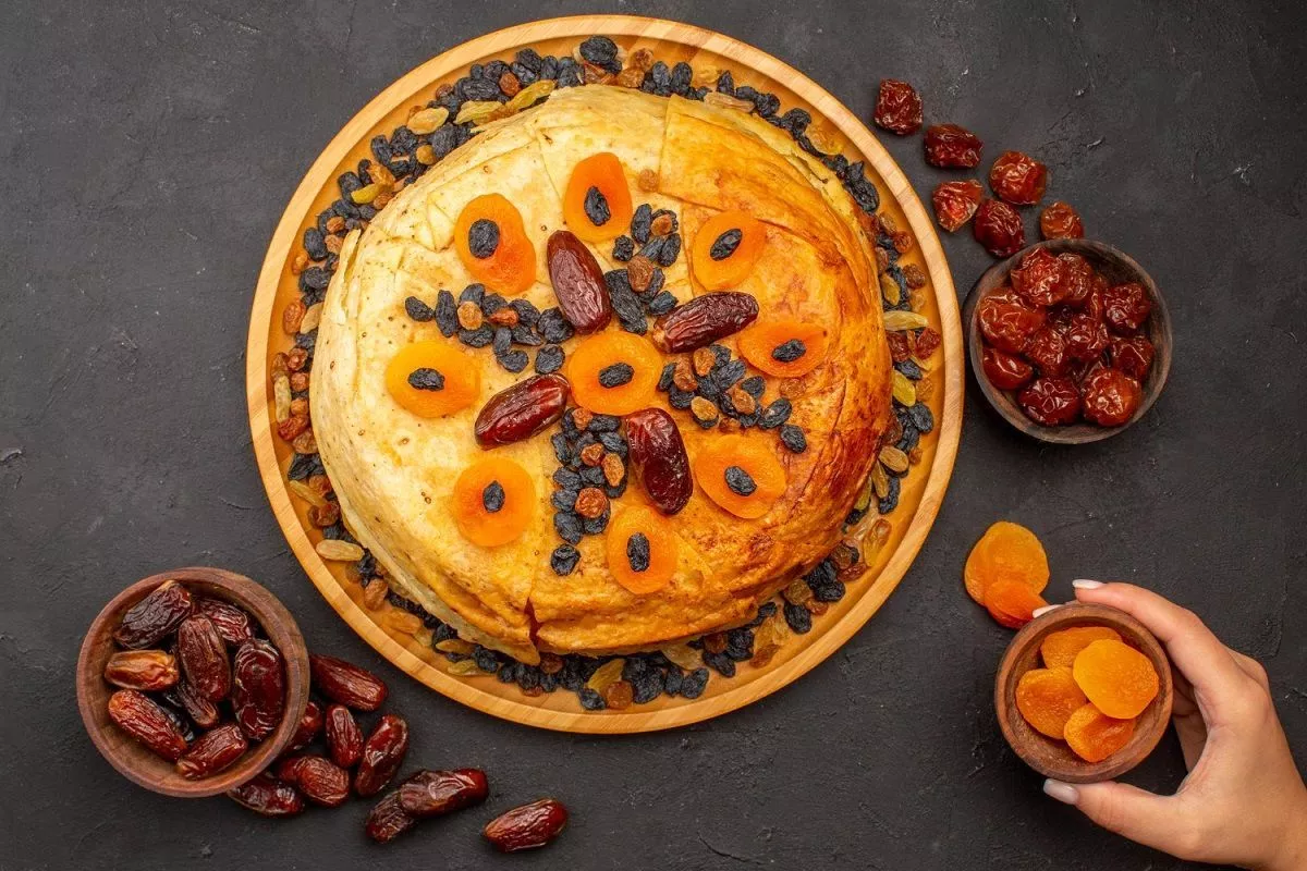 Пирог с начинкой из орехов и фиников готовится всего за полчаса и без лишних усилий.