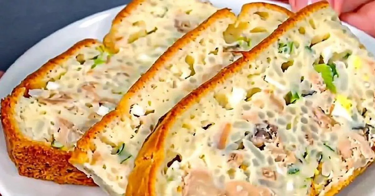 Идеальный заливной пирог с консервами горбуши и рисом: тесто на сметане, которое всегда получается.