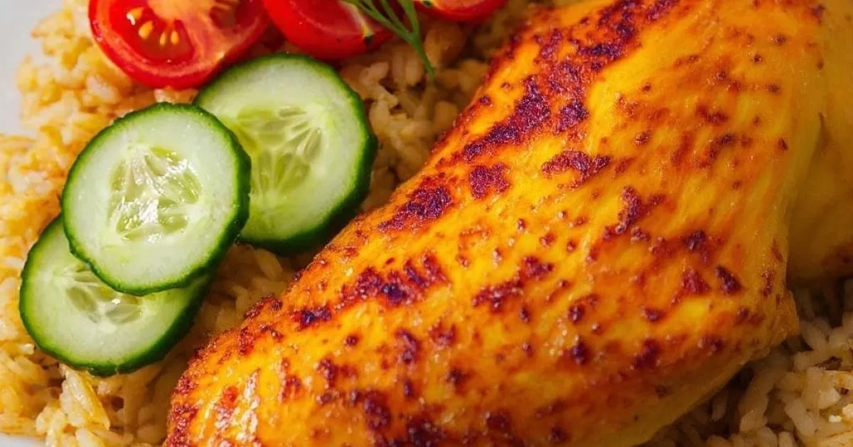 Сначала обжарим куриные бедрышки на сковороде до золотистой корочки, а затем тушим их в бульоне с овощами и рисом до готовности.