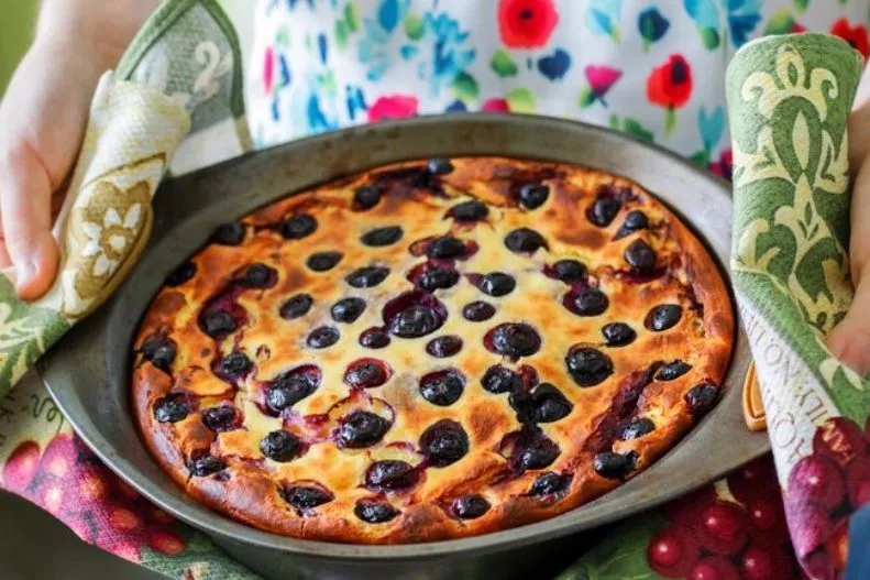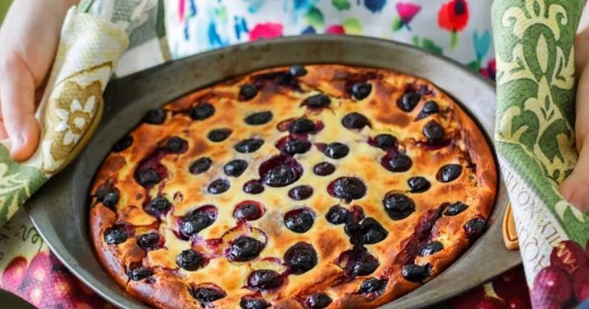 Нежнейший, как пушистое облако, пирог с сочными ягодами и золотистой корочкой.