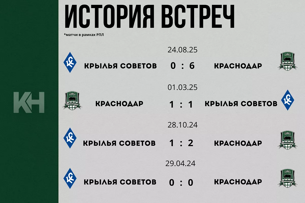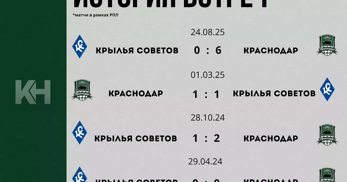 30 ноября на Ozon Арене «Краснодар» сыграет с «Крыльями Советов» в рамках 17-го тура Мир РПЛ. Стартовый свисток — в 14:00 по московскому времени.