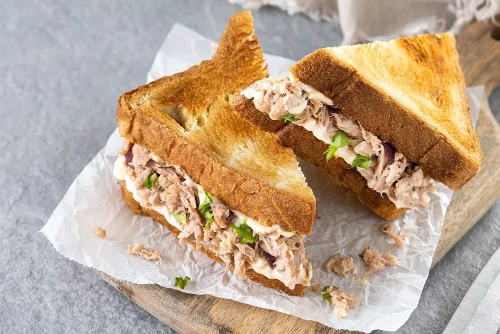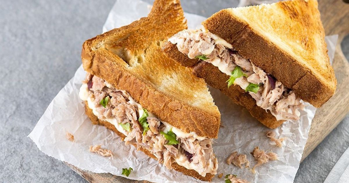 Ваш сэндвич с тунцом готов! Он получается с идеальным балансом вкуса: сладковатый хлеб, солоноватая начинка и легкая кислинка от помидора.