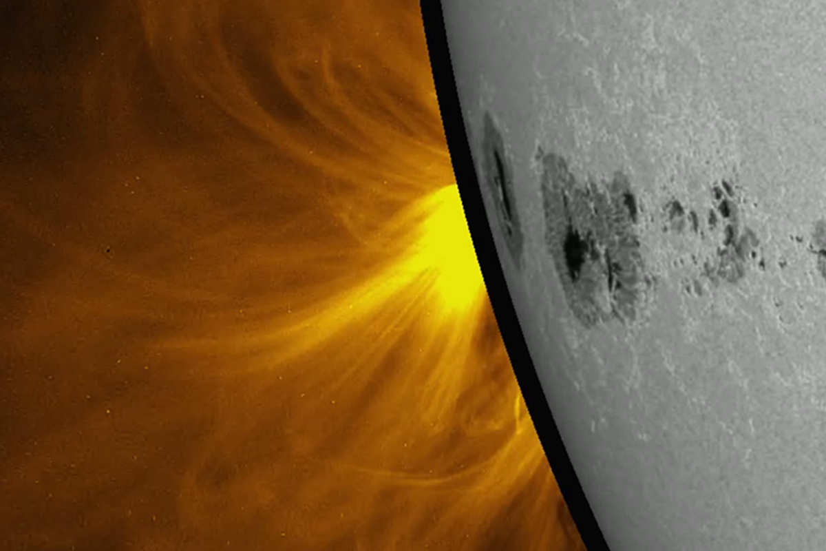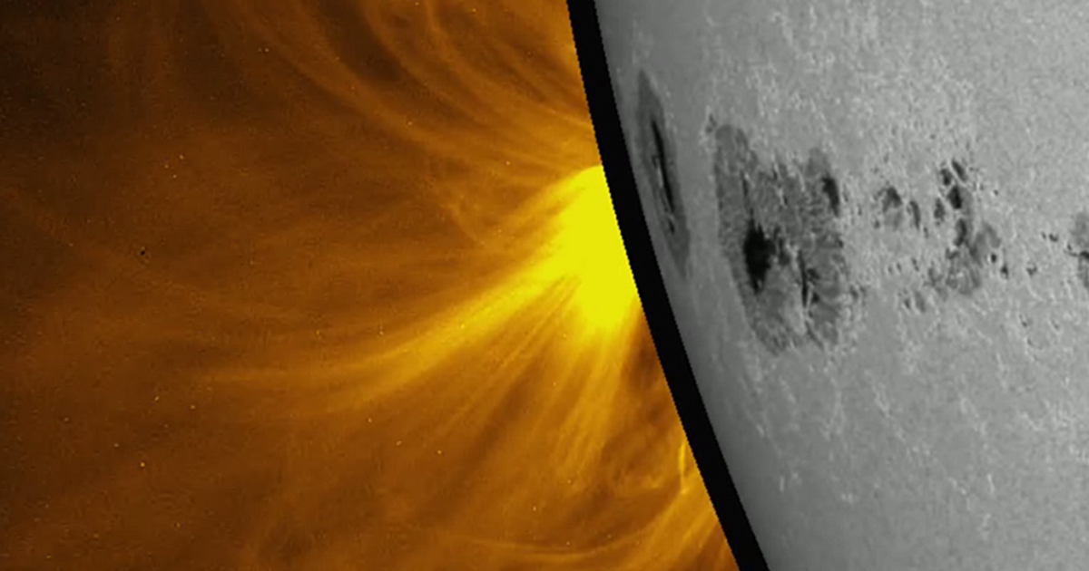 Уже видны вершины магнитных петель, но сама группа пятен пока скрыта от наблюдения.