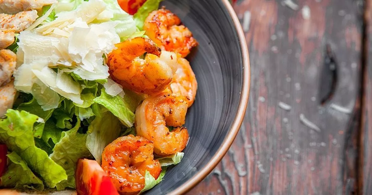 Фирменный рецепт салата с креветками от Оксаны Чаленко. Идеальное сочетание нежных морепродуктов, свежих овощей и сыра.