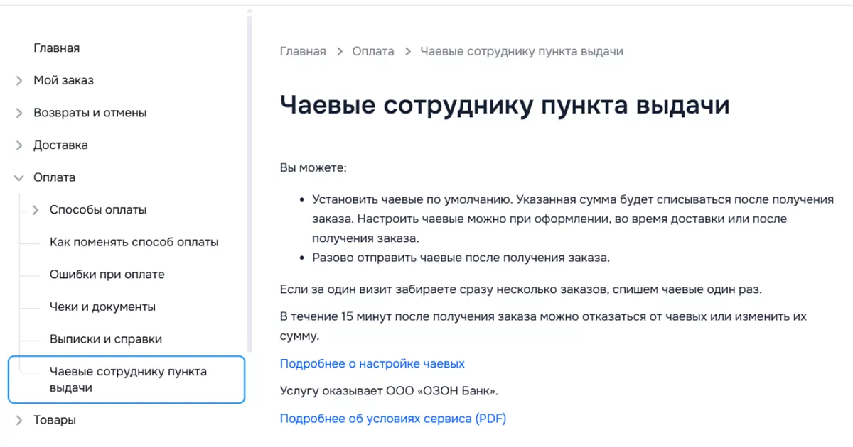 Ранее в Telegram-каналах распространилась информация, будто после первого перевода чаевых платформа автоматически включает автосписание при последующих заказах. Однако в Ozon это опровергли.