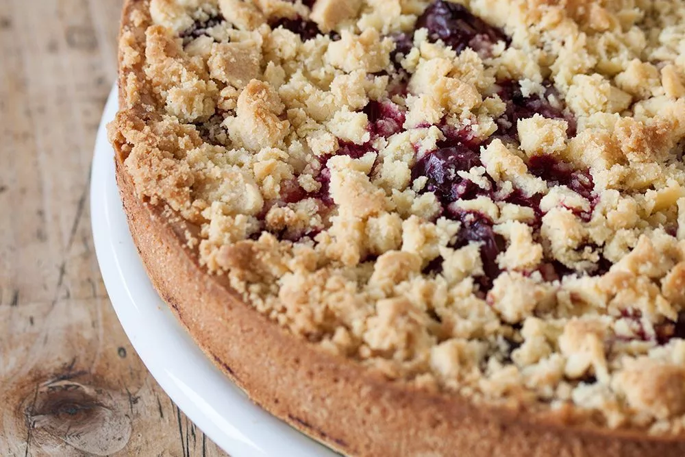 Выпекайте тертый пирог в разогретой до 180°C духовке 20-25 минут, до золотистого цвета. Время зависит от вашей духовки.