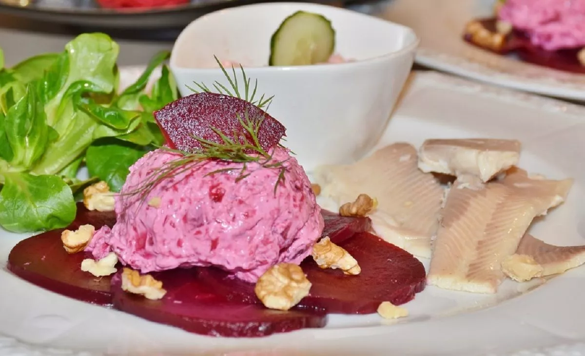 Начинаем сборку салата. Для необычной подачи можно использовать порционные креманки, бокалы или даже силиконовые формочки для кексов. Выкладывайте слои в следующей последовательности: сельдь, маринованный лук, картофель, майонез, морковь, яблоко, свекла, майонез, тертые яйца. Украсьте салат зеленью, зернами граната или каплями бальзамического уксуса. А можно положить поверх каждой порции по чайной ложке соленой икры сельди. Поверьте, ваши гости будут в восторге от такой! Селедки под шубой!