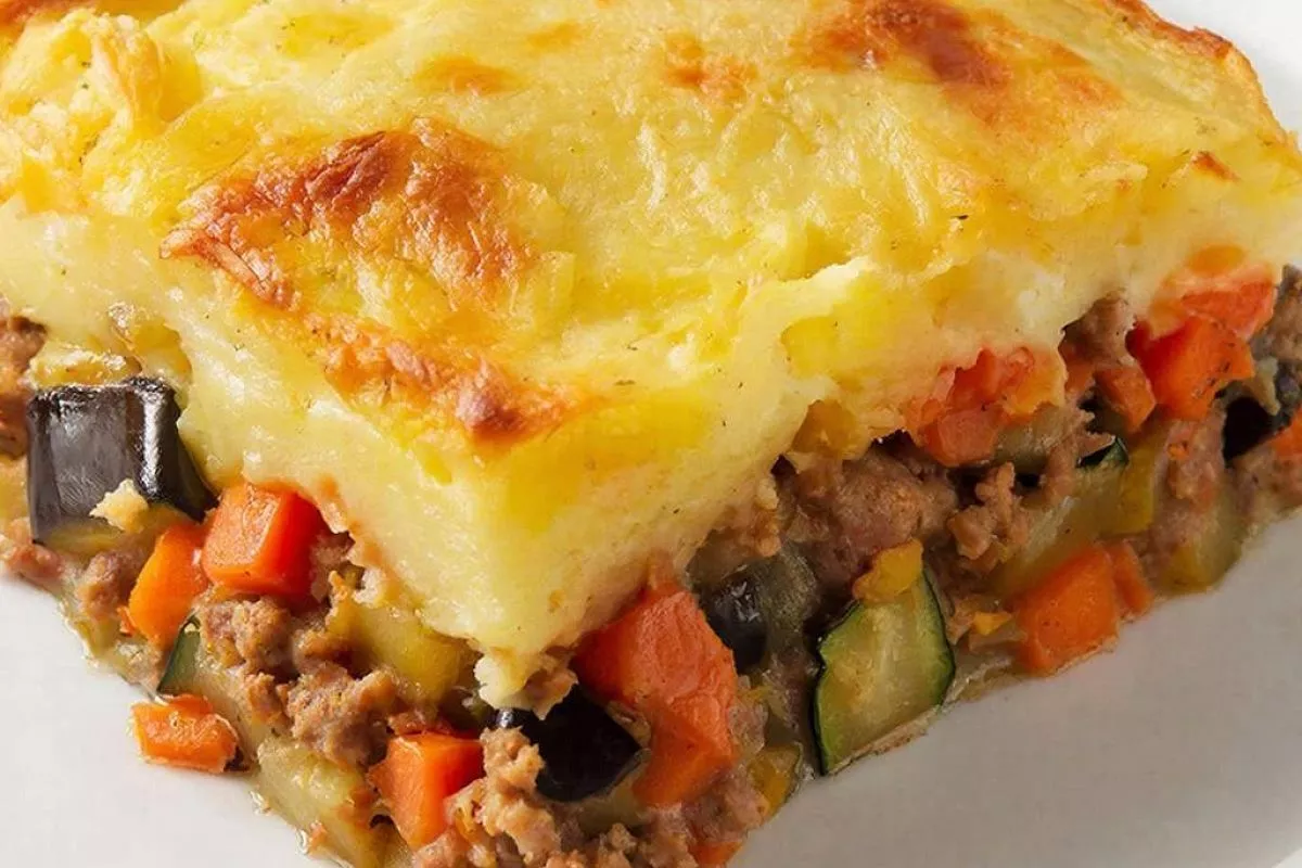 Ингредиенты для шести порций: картофель фри — 700 г.; говяжий или любой другой фарш — 400 г; репчатый лук — 1 шт.; болгарский перец — 150 г.; морковь — 100 г.; молоко — 750 мл; сливочное масло — 70 г; мука — 4 ст. л; сыр — 100 г; растительное масло — 1 ст. л; соль и черный перец — по вкусу.