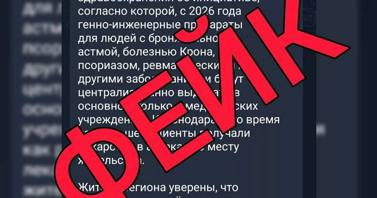 В телеграм-каналах распространяют информацию о том, что пациенты Краснодарского края с бронхиальной астмой, болезнью Крона, псориазом, ревматическими и другими заболеваниями могут остаться без жизненно важного лечения. Это связывают с якобы возможными изменениями в порядке выдачи необходимых медпрепаратов, из-за чего каждый месяц придется приезжать за лекарствами в Краснодар. Оперштаб Кубани заявил, что эта информация не соответствует действительности.