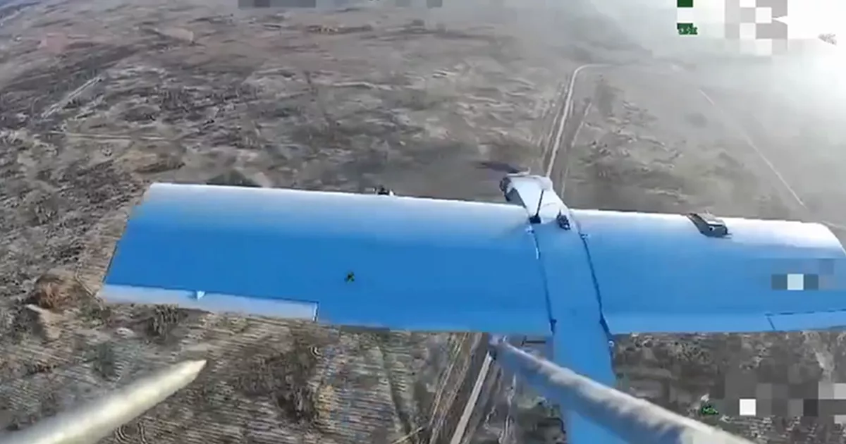 - Накануне оператор российского FPV-дрона «Бумеранг-10» подразделения БПЛА 18-й общевойсковой армии осуществлял вылет для обнаружения и уничтожения крупных разведывательных и ударных дронов украинских националистов. В процессе полета над территорией противника на правом берегу Днепра в небе был обнаружен украинский ударный БПЛА «Дартс» самолетного типа, используемый подразделениями ВСУ в качестве барражирующего боеприпаса, - прокомментировали кадры в федеральном ведомстве. - Начальником расчета незамедлительно было принято решение уничтожить БПЛА противника тараном. Удар был результативным – буквально с первого захода российский FPV-дрон вонзил острые наконечники в левую консоль украинского беспилотника и значительно повредил ее. Спустя несколько секунд дрон-камикадзе «Дартс» развалился и взорвался в небе.