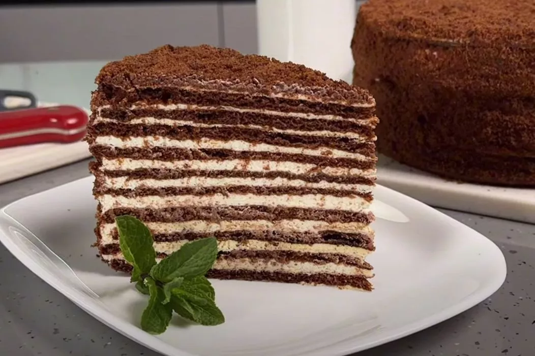 Почему это работает? Секрет в тесте, которое готовится методом заварки. Мёд, масло и яйца прогреваются вместе, сода в этой среде активируется идеально, делая текстуру коржей особенно пластичной и пористой. А выпечка на сухой хорошо разогретой сковороде имитирует эффект печи — коржи быстро схватываются, не сохнут и равномерно пропекаются. Холодный крем на сметане и сливках даёт нужную кислинку и легкость.