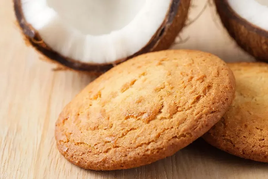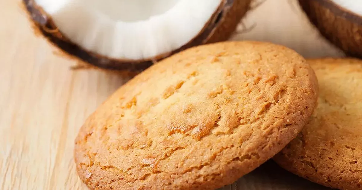 Без продуктов животного происхождения, на растительном масле и воде (или кокосовом молоке), печенье легкое и полезное. Кокосовая стружка дарит насыщенный вкус и текстуру, разрыхлитель обеспечивает пышность, а ванильный сахар – кремовый аромат. Калорийность порции ~120 ккал, подходит для диеты.
