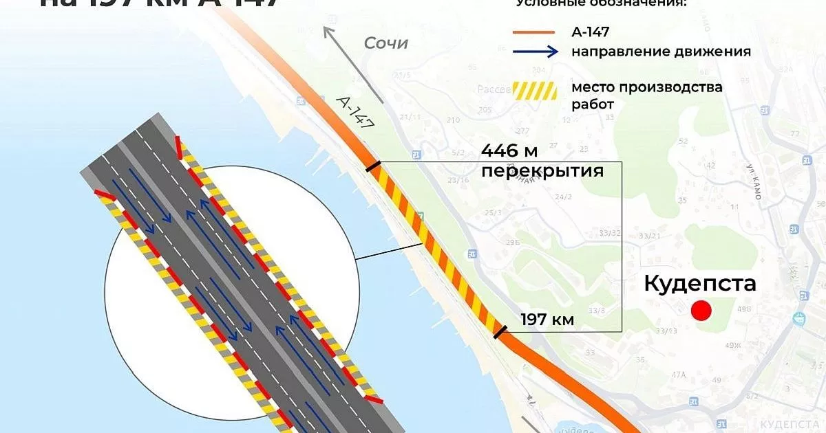 - В рамках строительства примыкания обхода Адлера к трассе А-147 на 197 км в микрорайоне Кудепста с 6 декабря меняется схема движения на двух участках по прямому и обратному ходу, - сообщает пресс-служба «Автодора».