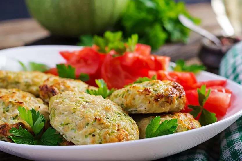 Второй и главный секрет — кабачок. Он практически не чувствуется на вкус, но, испаряя влагу при жарке, создаёт внутри котлеты эффект лёгкого пара, который делает её необычайно сочной и воздушной, а миндальная мука, впитывая лишний сок, помогает держать форму.