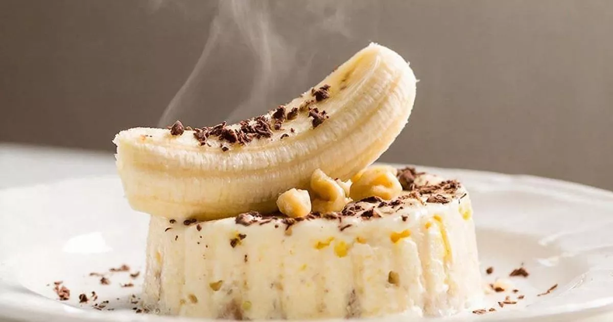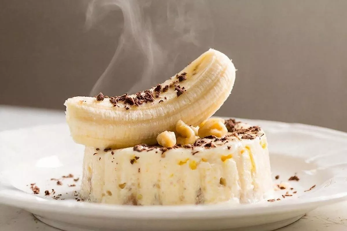 Банан в итальянском десерте раскрывается иначе, чем в выпечке: карамель подчеркивает его сладость, а молочная основа собирает вкус в нежный, гладкий крем.