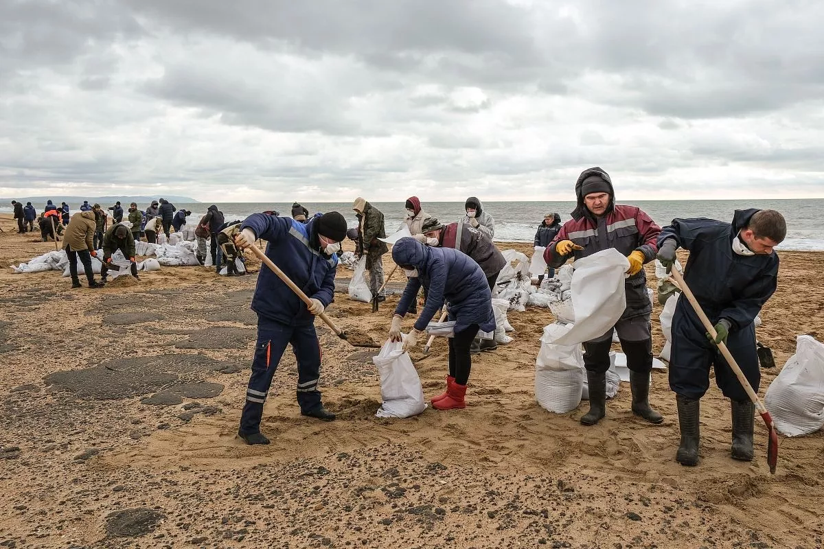 Подключаются добровольцы из других регионов. Для них работает волонтерский штаб и запущен телеграм-чат «Анапа. Волонтеры моря» со всей актуальной информацией. Открыто 11 пунктов обогрева. Средства индивидуальной защиты для волонтеров и деньги на их покупку присылают со всей страны. Водолазы фиксируют повторные выбросы нефтепродуктов из танкеров.