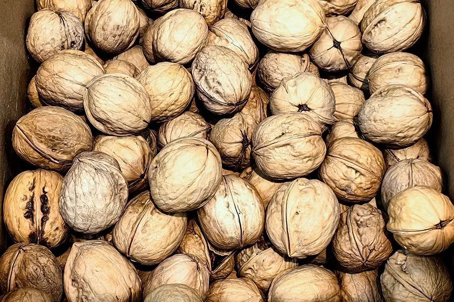 Чистые скорлупки от 10–15 орехов разломите пополам, уберите остатки перегородок и ядер – они могут заплесневеть. Промойте под проточной водой с содой (1 чайная ложка на 1 литр), чтобы убрать жиры и запах.