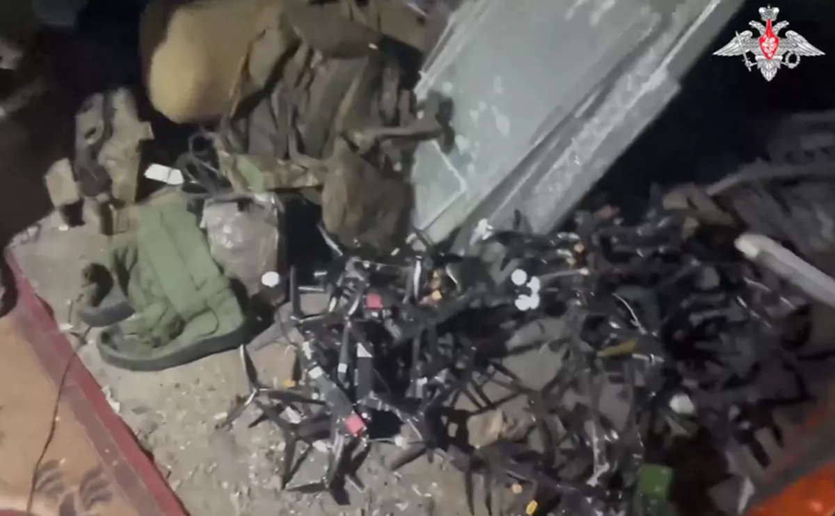 Боевики ВСУ оставили в подвале десятки FPV-дронов, электронику, катушки с оптоволокном, боеприпасы.