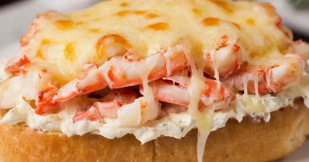 А теперь представим хрустящую основу из поджаренного хлеба, покрытую слоем сливочного, тающего во рту соуса, сочной начинкой из крабовых палочек, и давайте быстрее готовить!