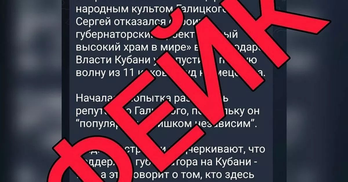 Причиной иска называется отказ бизнесмена строить новый храм в Юбилейном микрорайоне Краснодара. Эти сообщения особенно активно рассылают в чатах микрорайона. Оперштаб Кубани разоблачил этот наспех состряпанный фейк.