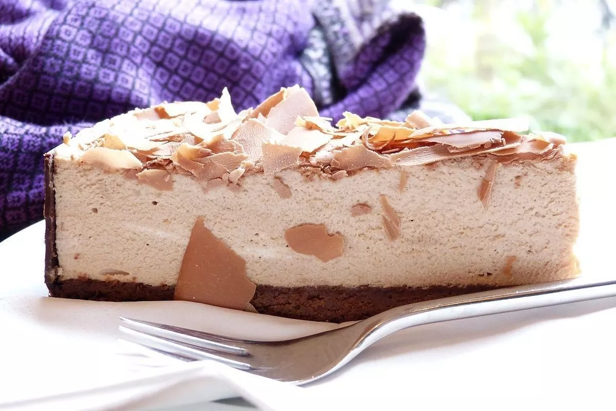 Возьмите форму для торта (лучше разъемную) и застелите дно пищевой пленкой. Теперь выкладываем половину нашей кремовой смеси, сверху посыпаем орехами и кокосом. Затем равномерно распределяем вторую половину крема и отправляем будущий десерт в холодильник минимум на три часа, лучше всего оставить его там на ночь.