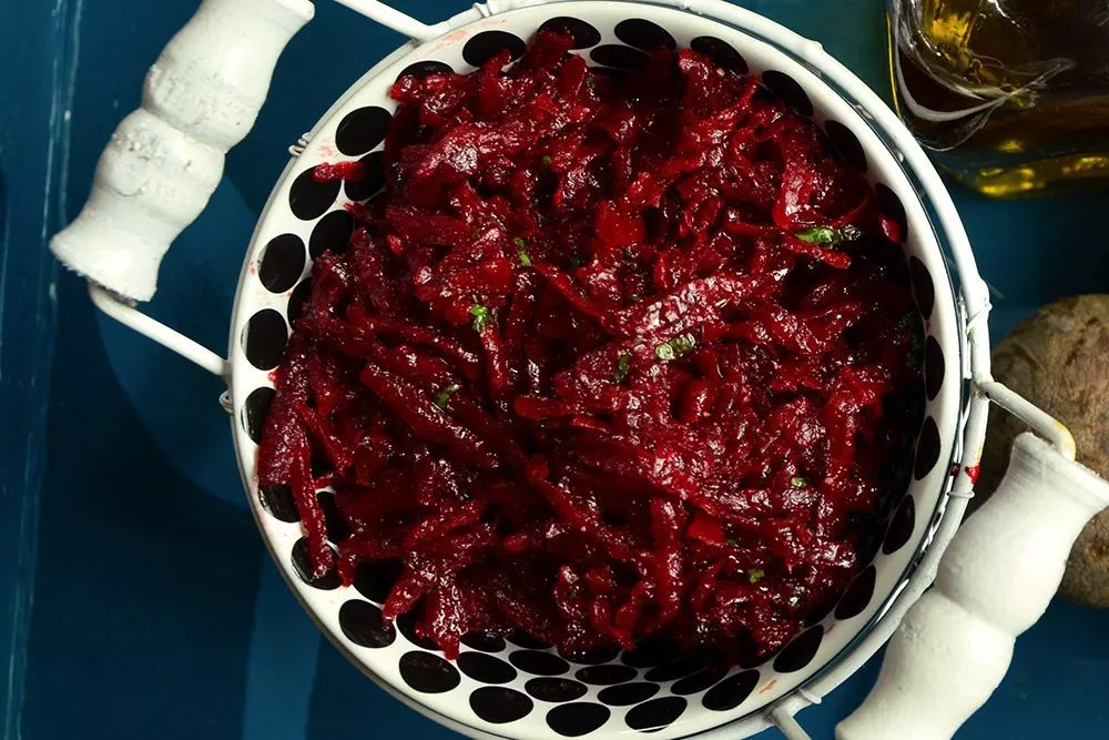 Простой рецепт яркой, полезной и очень бюджетной закуски из свеклы на скорую руку.