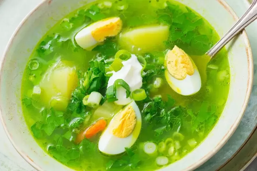 Зеленый борщ – это легкий суп на щавеле, популярный в русской и украинской кухне, с кислой ноткой от зелени, картофелем и часто яйцами или мясом. Традиционный вариант сытный, с копченостями, сметаной и яйцами вкрутую, жирный от бульона. Постный же вариант гораздо легче, но не уступает по вкусу и сытности.