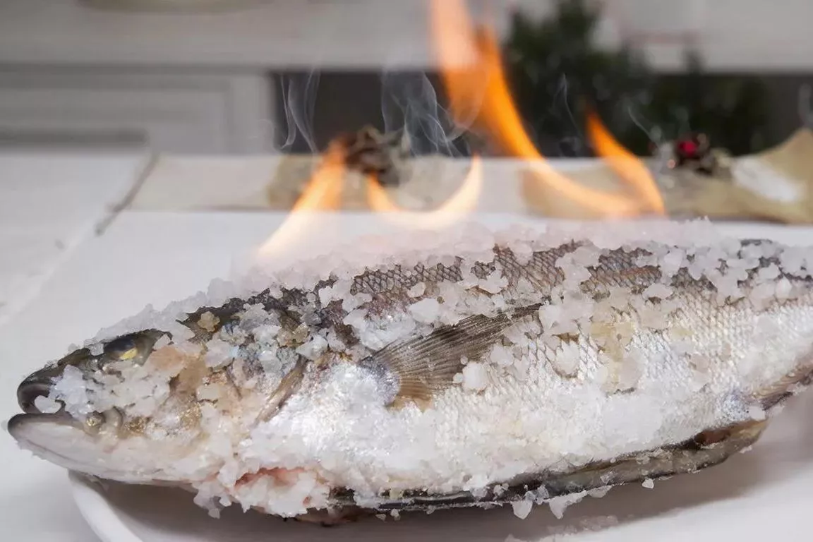 "Для тех, кто на Новый год планирует рыбное меню или хочет удивить гостей, напомню этот вау-рецепт с эффектной подачей", - пишет автор канала «Кухня наизнанку» Оксана Чаленко. Фишка в том, что рыбу целиком запекают в панцире из соли.
