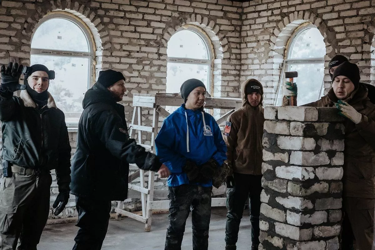 Добровольцы продолжили работу в одном из храмов населенного пункта: они заливали пол и помогали в кирпичной кладке четырех опорных столбов здания. Также парни и девушки убрали территорию часовни и купальни от мусора, листвы и сухостоя.