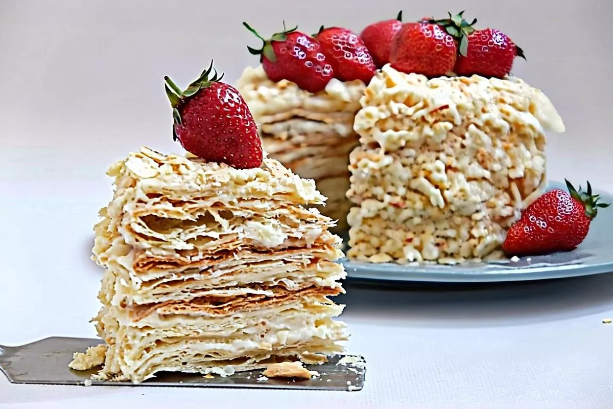 Этот вариант знаменитого десерта станет настоящим спасением для тех, кто хочет порадовать семью вкусной домашней выпечкой без многочасовой готовки. Основу рецепта составляет готовое слоеное печенье, а главный акцент сделан на заварном креме, который легко готовится на плите и не требует особых навыков.